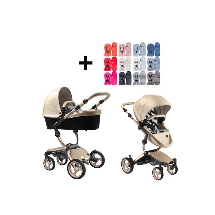 Mima Xari Kinderwagen | Frame – Champagne | Zitje + Kap – Champagne | Starterpakket – Zwart & Wit