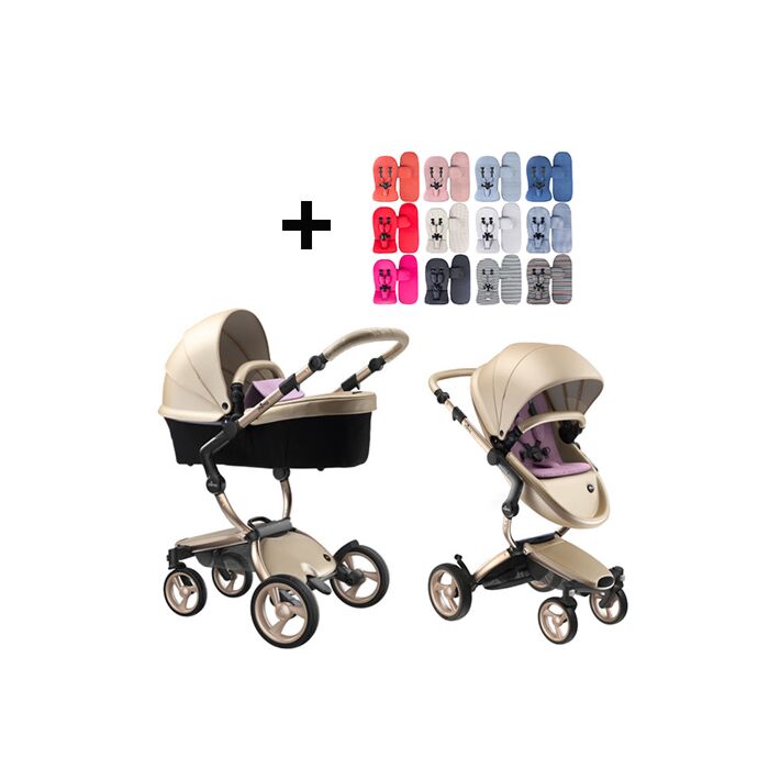 Mima Xari Kinderwagen | Frame - Champagne | Zitting + Kap - Champagne | Starter Pack - Pixel Pink