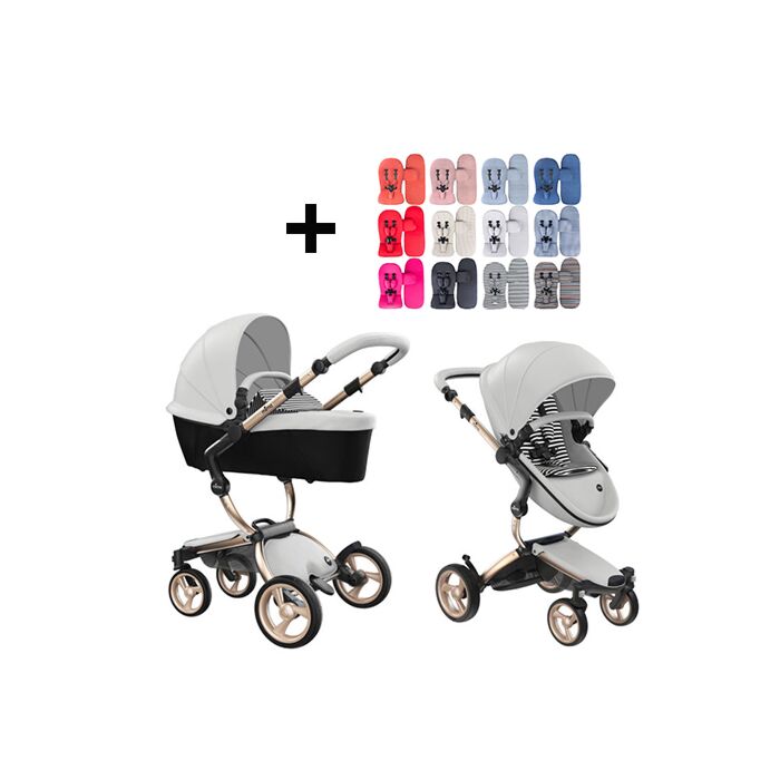 Mima Xari Kinderwagen | Frame - Champagne | Zitje + Kap - Sneeuwwit | Starterpakket - Zwart & Wit