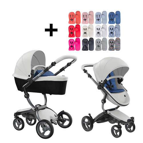 Mima Xari kinderwagen | frame - grafietgrijs | zitje + kap - sneeuwwit | startpakket - denimblauw