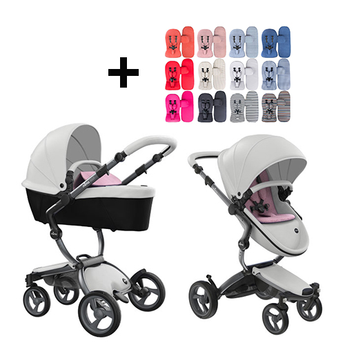 Mima Xari Kinderwagen | Frame – Grafietgrijs | Zitting + Kap – Sneeuwwit | Startpakket – Pixelroze