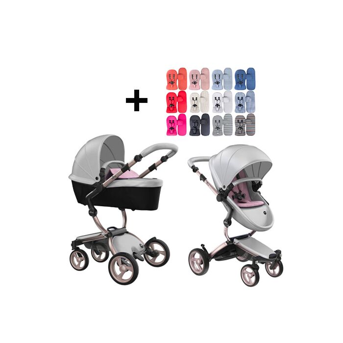 Mima Xari Kinderwagen | Frame - Rose Gold | Zitting + Kap - Argento | Starter Pack - Pixel Pink