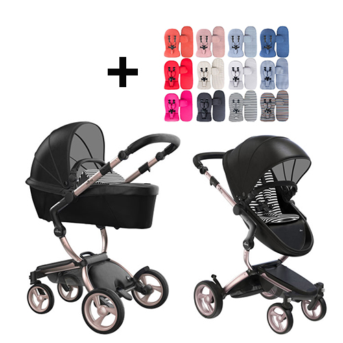 Mima Xari Kinderwagen | Frame – Roségoud | Zitting + Kap – Zwart | Starterpakket – Zwart & Wit