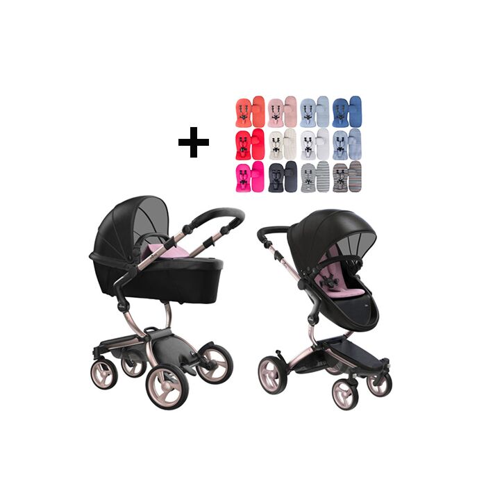 Mima Xari Kinderwagen | Onderstel - Roségoud | Zitting + Kap - Zwart | Startpakket - Pixel Pink