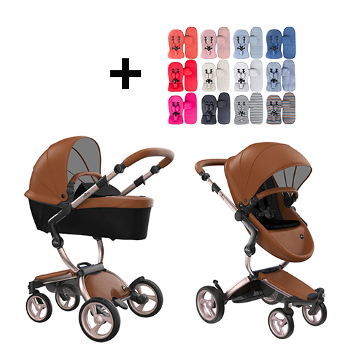 Mima Xari kinderwagen | onderstel – roségoud | zitje + kap – camel | startpakket – zwart