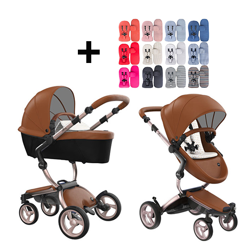 Mima Xari Kinderwagen | Frame – roségoud | Zitting + kap – camel | Startpakket – zandbeige