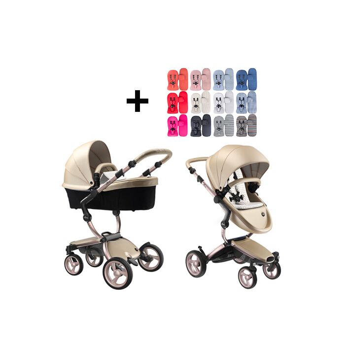 Mima Xari Kinderwagen | Onderstel – Roségoud | Zitting + Kap – Champagne | Starterspakket – Zandbeige