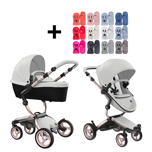 Mima Xari kinderwagen | frame – roségoud | zitje + kap – sneeuwwit | startersset – stone white