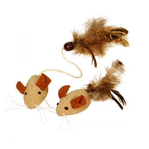 Deze speelmuis is gemaakt van linnen en veren met een pluche vulling. De lengte van de muisjes is 4,5 cm.