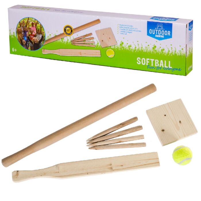 Organiseer een potje slagbal met jouw vrienden met de Outdoor Play Slagbalset. Deze set is perfect voor zowel beginners als gevorderde spelers. Beginners kunnen het plankje gebruiken om te slaan, terwijl gevorderde spelers de knuppel kunnen hanteren. De set bevat een houten knuppel van 59,5 x 3 cm, een houten slagbal plankje van 48,5 x 5,2 x 1,3 cm, 4 houten pennen die dienen als honken, 1 houten thuisplaat, en een tennisbal. Alles wordt geleverd in een full-colour doos met een uitgebreide handleiding. Geschikt voor kinderen vanaf 6 jaar.