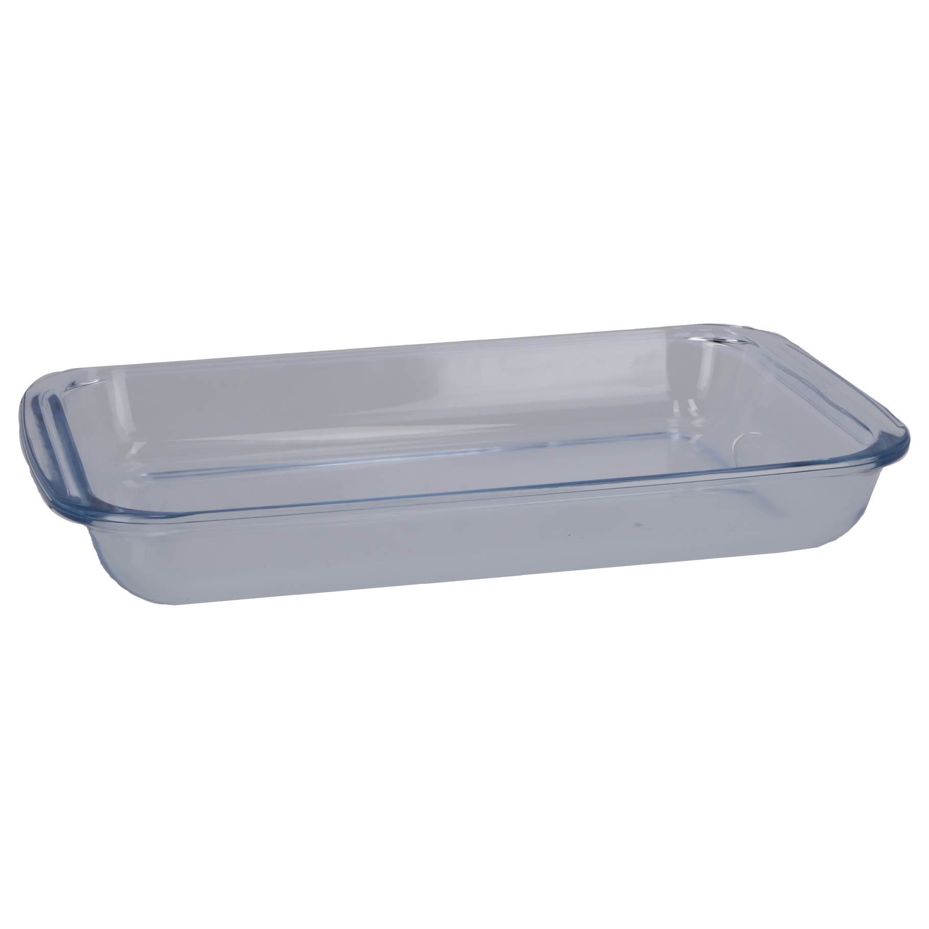 De ovenschaal is vervaardigd uit duurzaam glas en heeft een capaciteit van 3 liter, ideaal voor het bakken en braden van voedsel in de oven. De afmetingen zijn X cm lang, Y cm breed en Z cm hoog.