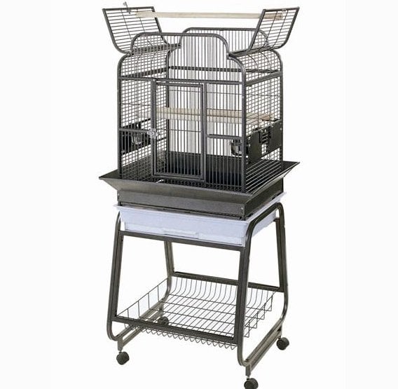 Deze papegaaienkooi heeft de afmetingen van 68 centimeter breed, 53 centimeter diep en 138 centimeter hoog. Het frame is ontworpen van duurzaam metaal en is afgewerkt in een stijlvolle hamerslag grijze kleur. De kunststof onderbak zorgt voor eenvoudige reiniging en beheer van de leefomgeving van uw vogels.