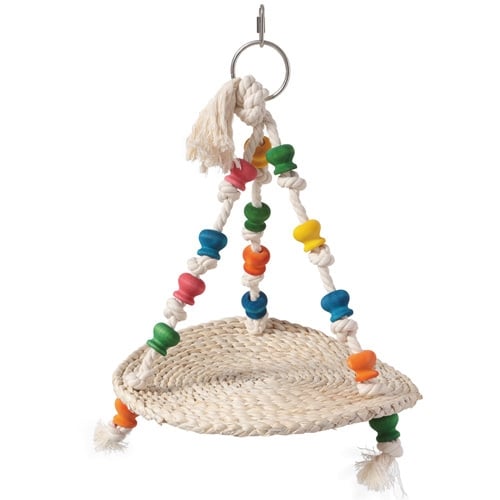 De schommel heeft een afmeting van 34 x 29 cm. Het gebruik van hoogwaardige materialen zoals katoenen touwen en dennenhout garandeert een stevige en duurzame constructie. De gevlochten mat biedt zowel stabiliteit als een comfortabele plek voor uw vogel.