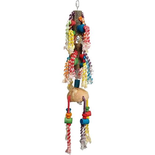 Ideaal voor grijze roodstaart, kaketoes en andere atletische papegaaien, de Coco Fantasy speelhanger kan geplaatst worden in de kooi of in een speelruimte. Dit bevordert de dagelijkse activiteiten van uw vogel en draagt bij aan zijn fysieke fitness.