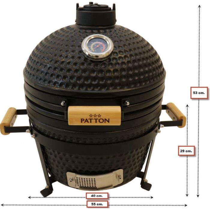 Patton | Kamado Grill | 16" - Keramische barbecue - Tafelmodel - Classic Black - Medium - Compleet - Mat Zwart