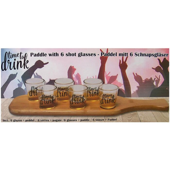 Serveerset – houten serveerschaal met 6 shotglaasjes – tijd voor een verfrissing