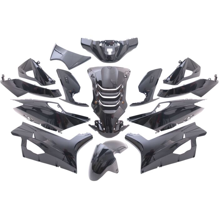 Deze vervangingsset bevat de belangrijkste carrosserieplaten, zoals de voorkap en zijschermen, die niet alleen esthetisch zijn, maar ook functionele voordelen bieden door de aerodynamica van de scooter te verbeteren en bescherming te bieden tegen vuil en water. Elk onderdeel is ontworpen om naadloos in elkaar over te lopen voor een optimale afwerking.