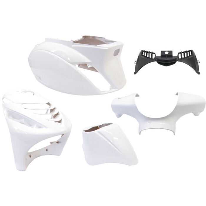 Ontdek deze vijfdelige bodyset, perfect passend op de Piaggio Zip-SP (vanaf modeljaar 2000). Ideaal als vervanging of upgrade, met een frisse glanzend witte finish voor een vernieuwde uitstraling.