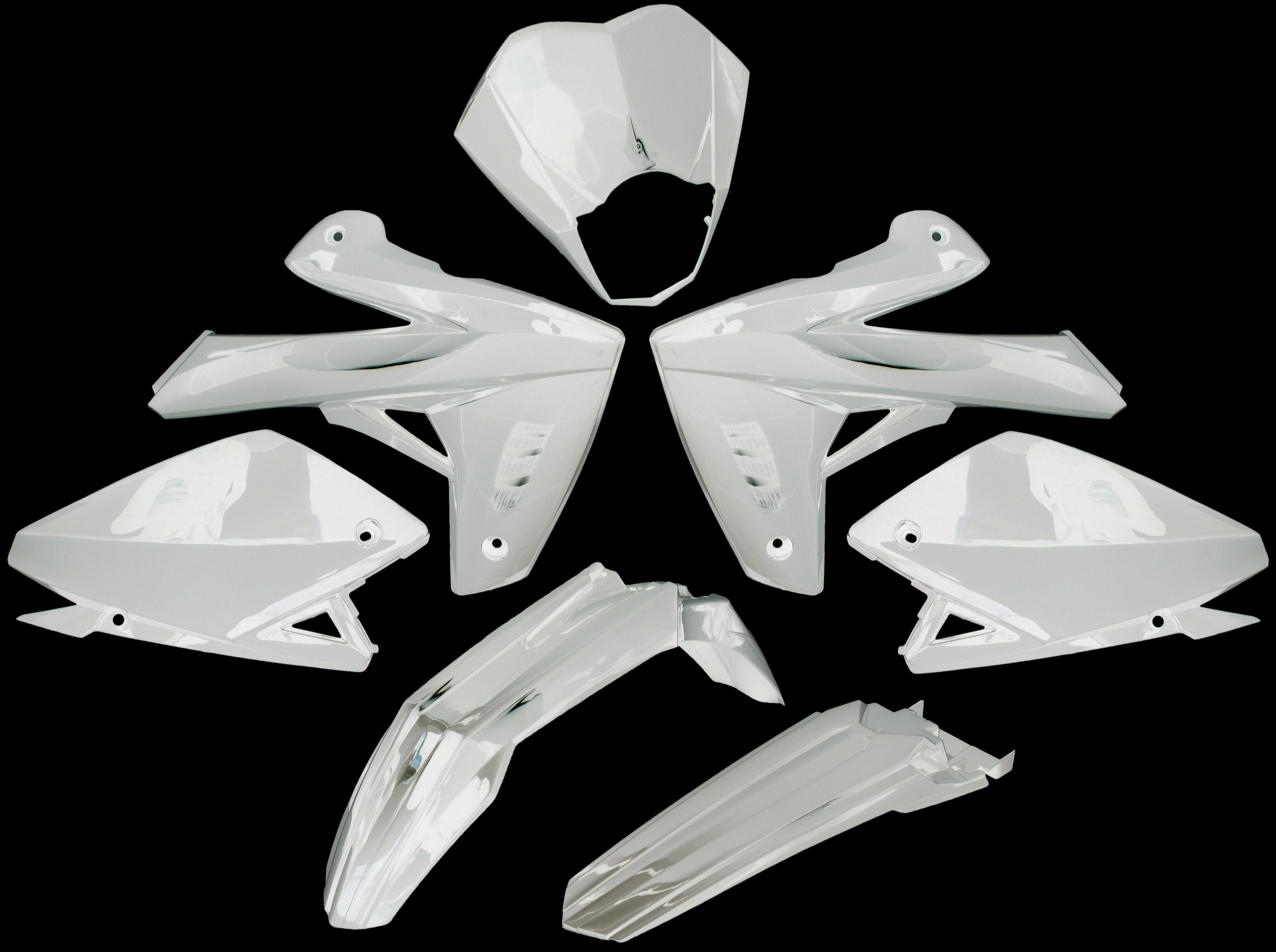 Het kappenset bestaat uit 7 verschillende delen die perfect passen op de Rieju MRT 50. Elk onderdeel is gemaakt van hoogwaardig, lichtgewicht kunststof dat zowel robuust als duurzaam is. De afmetingen zijn specifiek afgestemd op de motor, waardoor installatie eenvoudig en nauwkeurig is.
