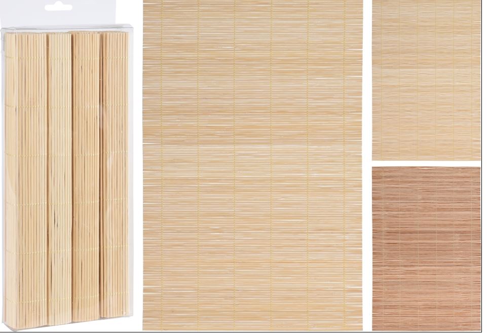 De placemats hebben een standaardafmeting die perfect is voor de meeste eettafels. Ze zijn vervaardigd uit hoogwaardig bamboe, waardoor ze duurzaam en gemakkelijk schoon te maken zijn.