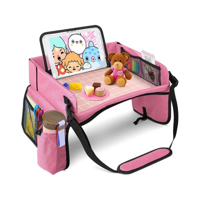 Met een rustig roze kleurenschema en een speels ontwerp, is de reistafel aantrekkelijk voor kinderen. De geïntegreerde tablethouder zorgt ervoor dat apparaten veilig en stabiel blijven, zodat kinderen tevreden kunnen genieten van hun favoriete films en spellen.
