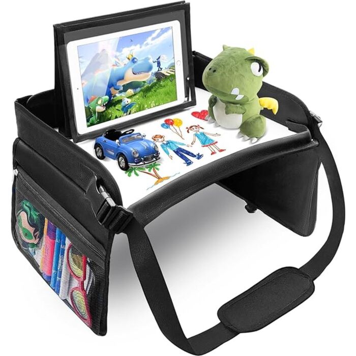 Een lange autorit is vaak een hele opgave voor kinderen: stilzitten is moeilijk en de favoriete spelletjes en activiteiten lijken net niet te passen. De Reistafel biedt de ideale oplossing. Dankzij het slimme ontwerp kunnen kinderen kleuren, spelen en films kijken op hun tablet met de bijgeleverde houder.