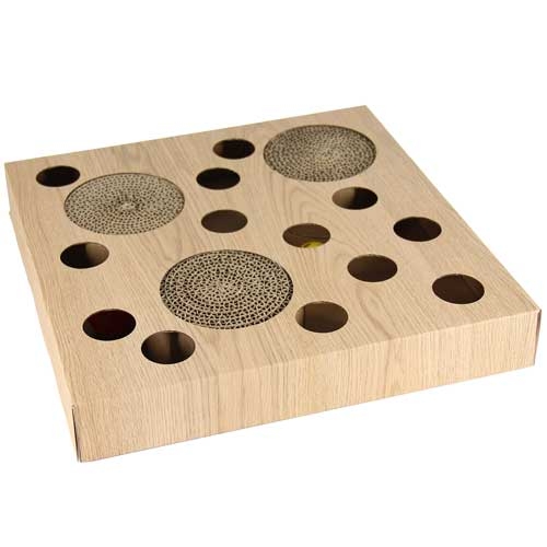 Quapas! Cheesy heeft een praktische afmeting van 30x30x5 cm en is vervaardigd uit hoogwaardig en veilig materiaal dat geschikt is voor katten. De openingen en teksturen zijn speciaal ontworpen om katten uit te dagen en te stimuleren bij hun zoektocht naar de balletjes.