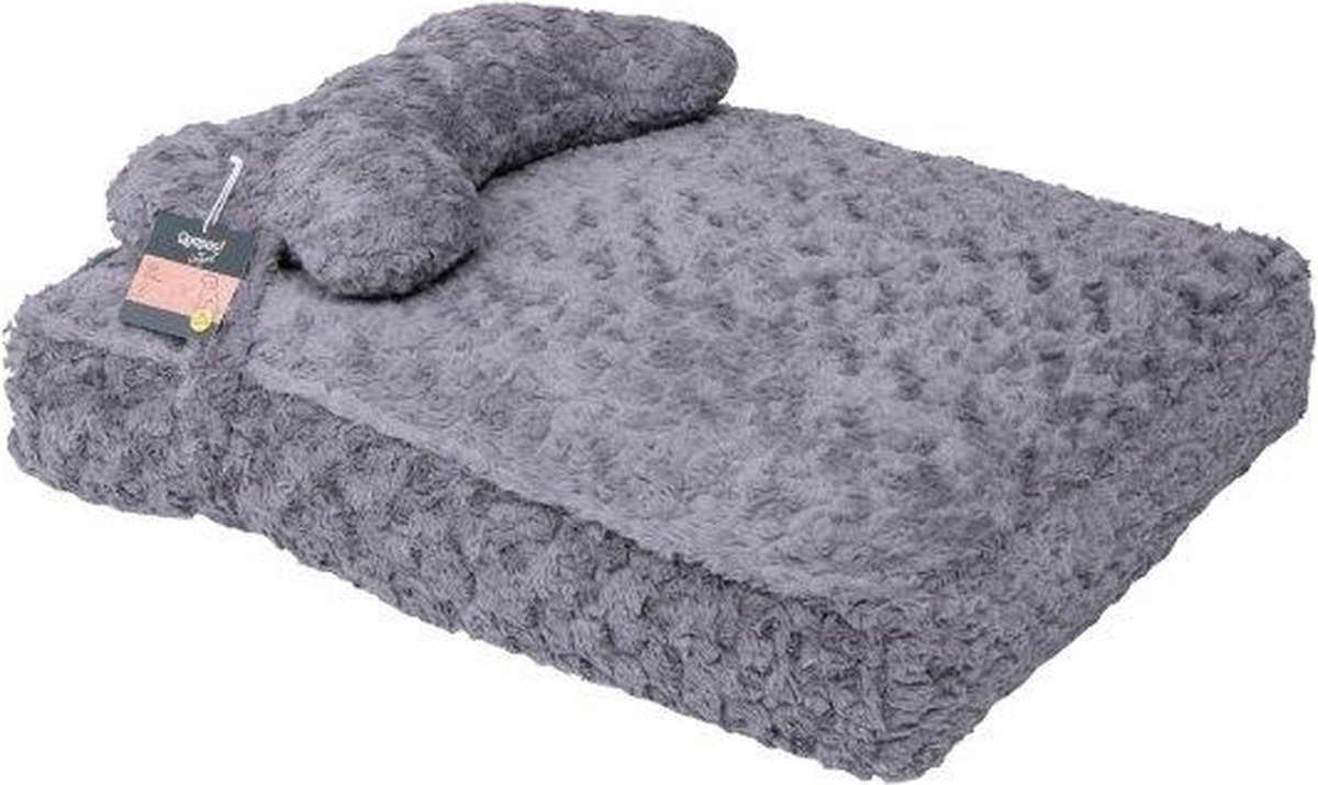 Naast de comfortabele vulstructuur, heeft het kussen een stijlvol grijs ontwerp dat in elke interieurstijl past. Het botvormige hoofdkussen is niet alleen een speelse toevoeging, maar biedt ook extra ondersteuning voor het hoofd van uw hond, wat bijdraagt aan hun welzijn.
