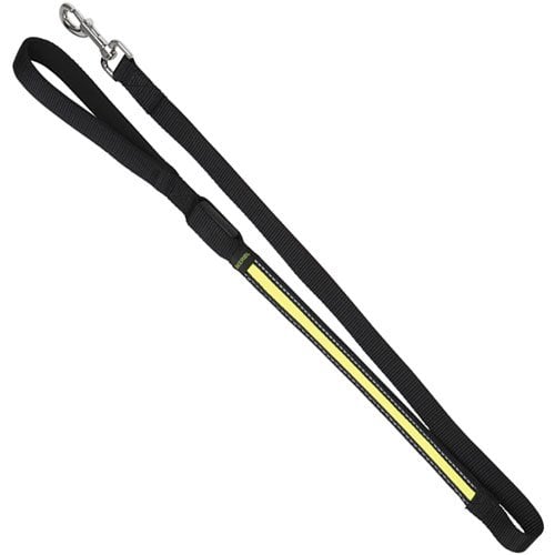 Houd uw hond veilig aangelijnd met deze stevige, waterdichte reflecterende hondenriem. De LED-verlichting heeft twee standen: knipperend of continu.