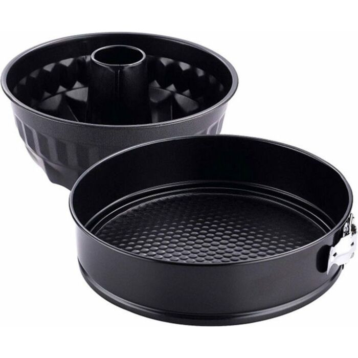 Ontdek de 2-delige bakvormenset van Renberg: perfect voor elke bakliefhebber. De set bevat een klassieke springvorm (Ø 26 cm × H 6,8 cm) en een tulbandvorm (Ø 22 cm × H 11 cm), beiden vervaardigd uit duurzaam carbonstaal voor optimale warmteverdeling en perfecte baktresultaten.