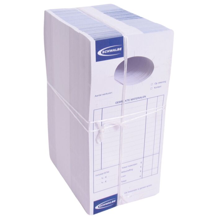 Dit product zijn de reparatiekaarten van Schwalbe, ontworpen voor professionele fietsenmakers die efficiënt willen werken en klanten willen bedienen. Deze kaarten bieden een gestructureerde manier om gegevens en reparatie-informatie vast te leggen, zodat fietsherstellingen soepel en georganiseerd verlopen.