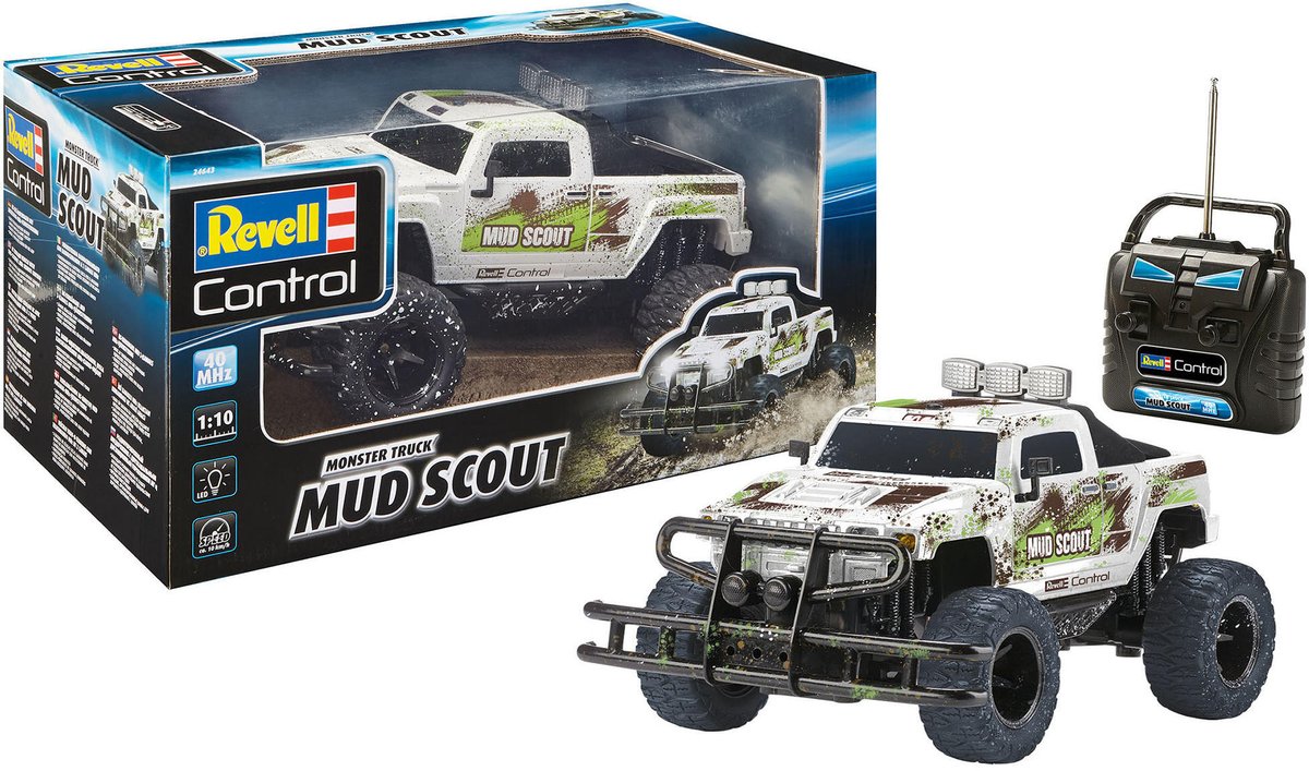 De Revell RC Monster Truck Mud Scout (804365) is een krachtige en veelzijdige monster truck die speciaal is ontworpen voor het verkennen van modderige en ruige terreinen. De truck is volledig gemonteerd en geleverd met een gebruiksvriendelijke afstandsbediening, waardoor hij direct na aankoop klaar is voor gebruik. Voel de opwinding van off-road rijden met zijn indrukwekkende prestaties.