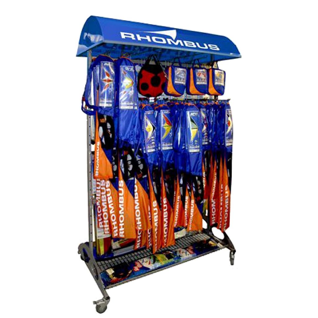 De Rhombus hangardisplay is ontworpen voor een professionele en efficiënte presentatie van ons veelzijdige vliegerassortiment. Met 35 haken biedt deze display een uitstekende structuur om verschillende modellen op een aantrekkelijke manier te tonen aan klanten en bezoekers.