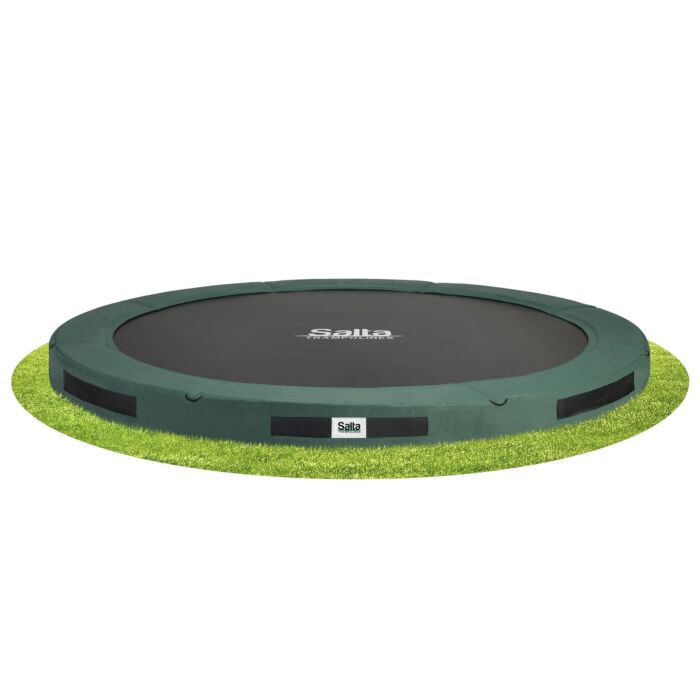 De trampoline is ontworpen voor optimale luchtcirculatie tijdens het springen en een veilige en gemakkelijke toegang voor kinderen door de lage op- en afstap. De Premium Ground is beschikbaar in verschillende vormen en maten, evenals in zwarte of groene kleuren, geschikt voor elke tuin.