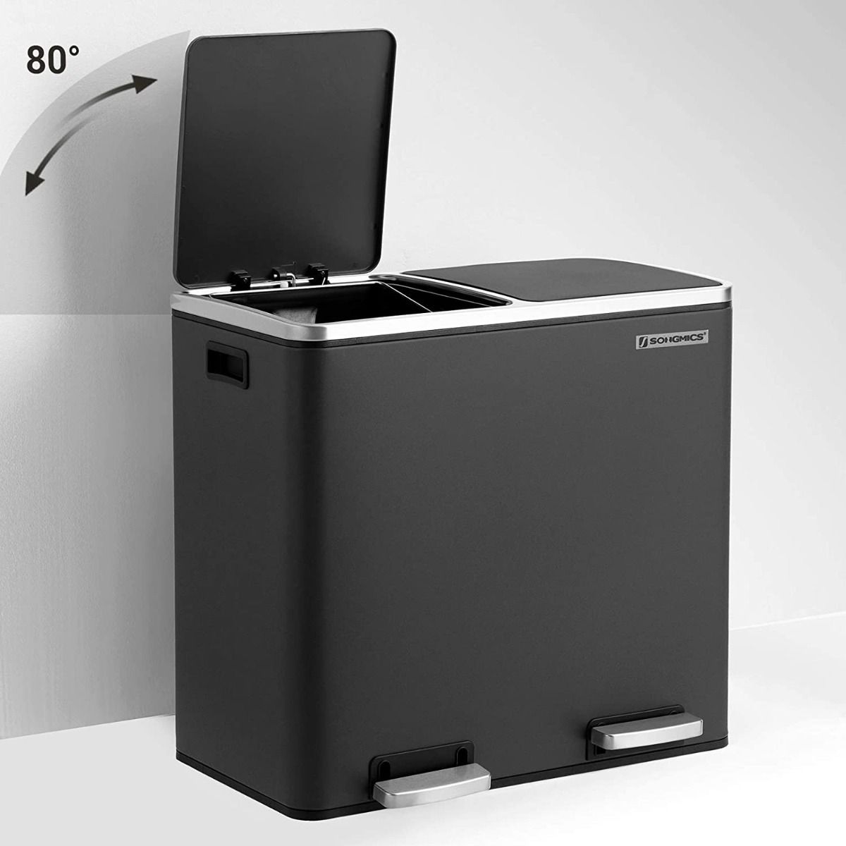 - Twee uitneembare binnenemmers voor gescheiden afval