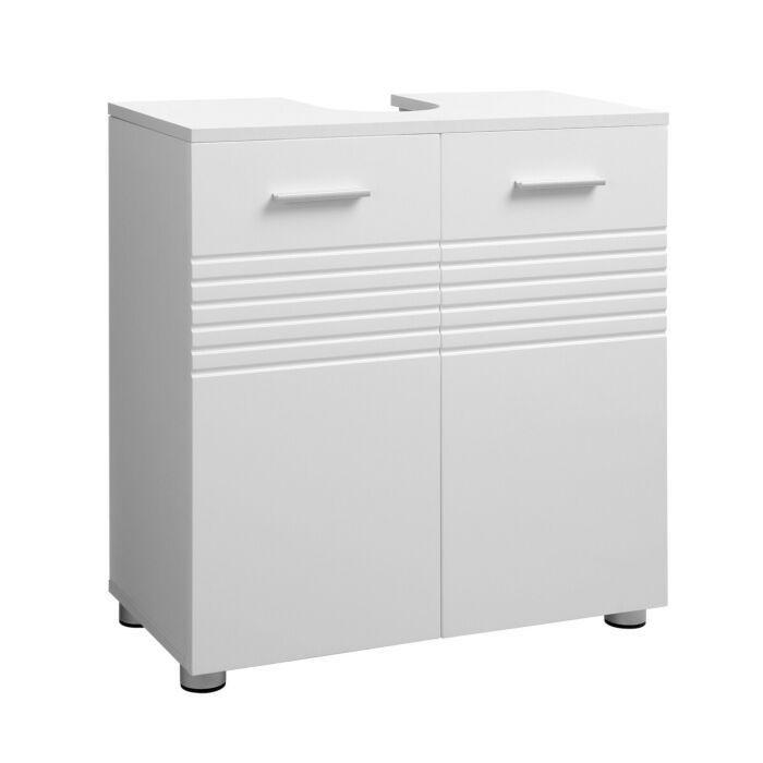 Breng orde in de badkamer: berg hygiëneproducten netjes op onder de wastafel. Dankzij de verstelbare plank, het royale werkblad en de U-vormige uitsparing (15 x 20 cm, l x b) is deze wastafelonderkast een uitkomst voor elke onopgeruimde badkamer.