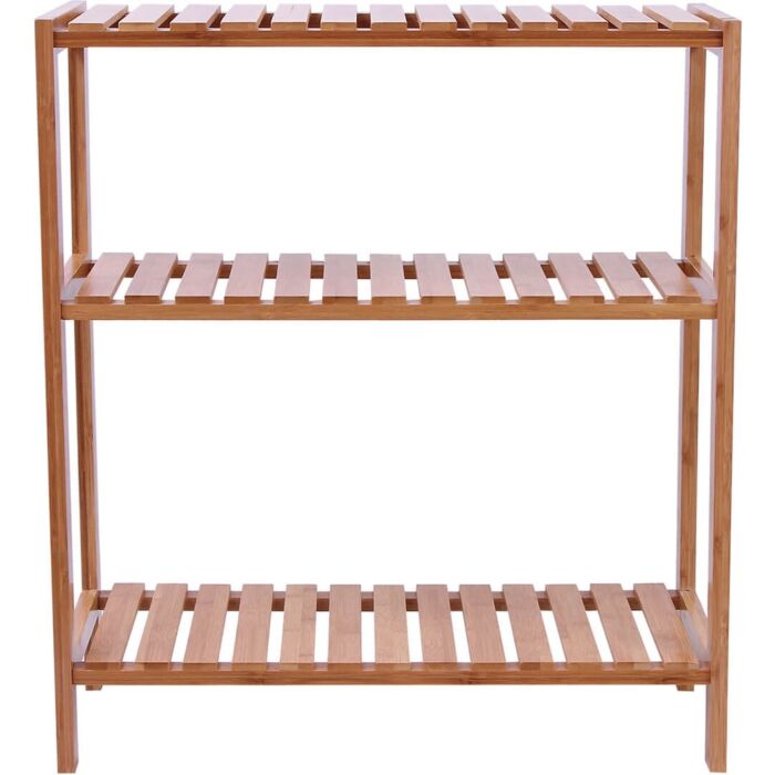 Dit rek heeft de afmetingen 60 x 26 x 66 cm en is gemaakt van natuurlijk bamboe, waardoor het zowel stevig als esthetisch aantrekkelijk is.