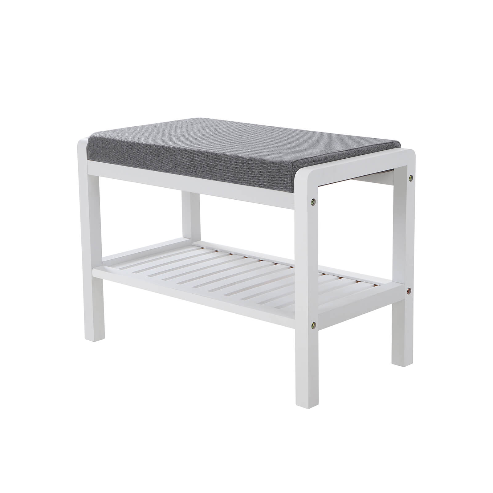 Bamboe Zitbank | 60 x 43 x 32 cm | Wit en Grijs | Met Zitkussen en Schoenenrek