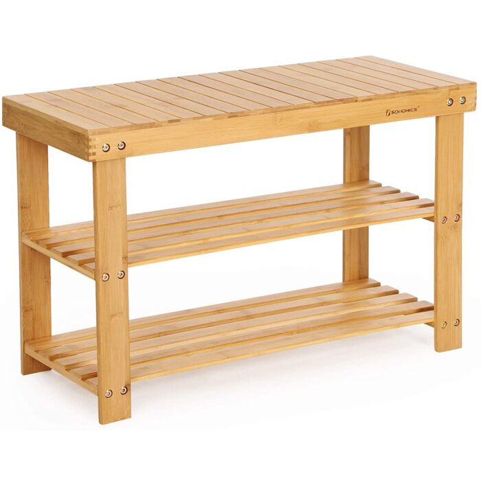 Met 3 handige draagvlakken biedt dit schoenenrek voldoende opbergruimte voor al je schoeisel. Het bovenste draagvlak kan tevens dienen als comfortabel zitje, waardoor het perfect is voor het gemakkelijk aan- en uittrekken van schoenen.
