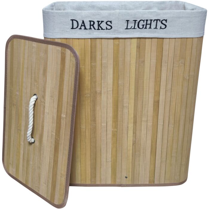 Hoppa! Bamboe Wasmand | 2 Vakjes | Natuurlijke Kleur | 52 x 32 x 63 (B x D x H)
