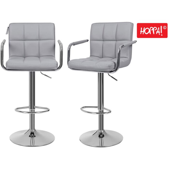 De Hoppa! Barkruk set van 2 in grijs, gemaakt van metaal en imitatieleer, biedt zowel kwaliteit als stijl in één product. Deze barkrukken zijn ontworpen met stabiliteit en veiligheid in gedachten, met een dikke houten plaat van 41 cm diameter voor een stevige basis.