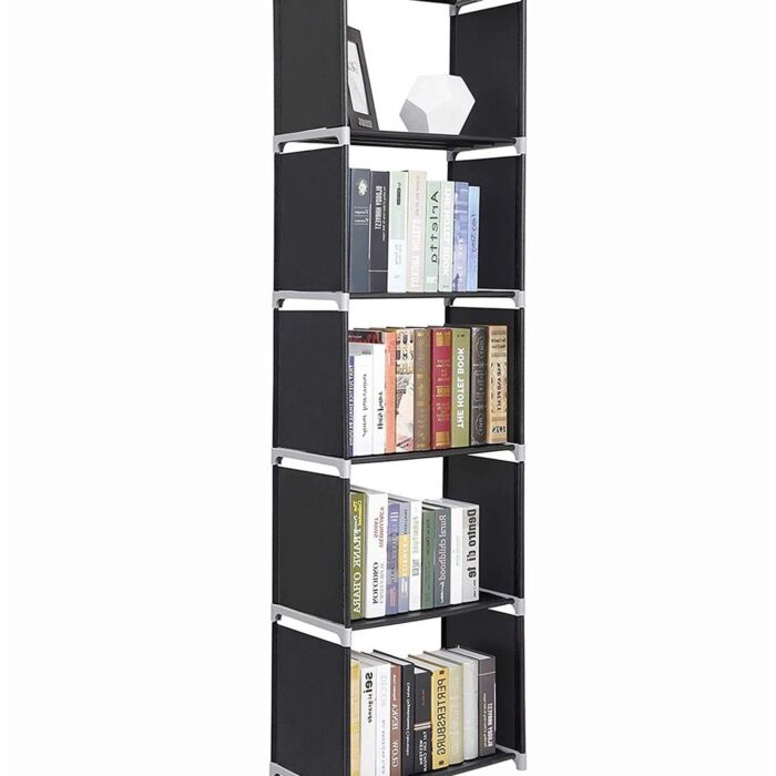 De boekenkast heeft een afmeting van 51 x 31 x 181 cm (B x D x H) en is gemaakt van een stevige ijzeren buis voor stabiliteit en niet-geweven stof voor een nette afwerking. Deze materialen zorgen ervoor dat de kast duurzaam is en lang meegaat.
