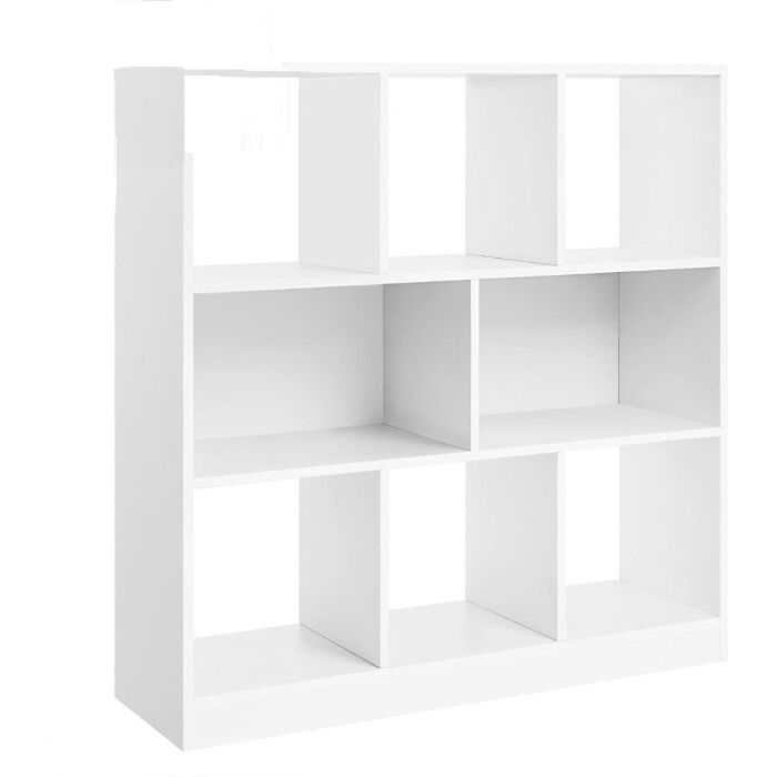 De boekenkast is voorzien van een L-vormig hoekijzer om te voorkomen dat deze kantelt. Dit zorgt voor extra stabiliteit. De plankverdeler heeft open compartimenten aan beide kanten en een compartiment met achterwand voor flexibele indeling en gemakkelijke toegang tot je spullen.
