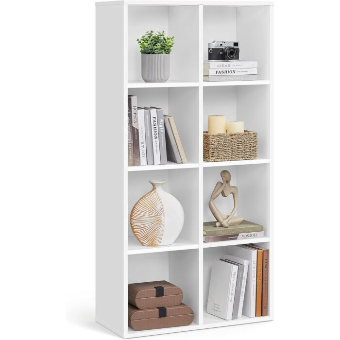 Deze vloerstaande boekenplank is ontworpen om zowel functioneel als esthetisch aantrekkelijk te zijn. Met 8 ruime vakken kunnen boeken en decoratieve items netjes worden georganiseerd. Het strakke witte ontwerp past goed bij verschillende interieurstijlen.