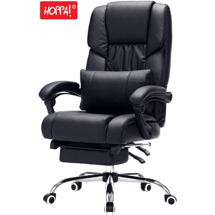 Hoppa! | Bureaustoel met voetensteun | Zwart - kunstleer (PU)