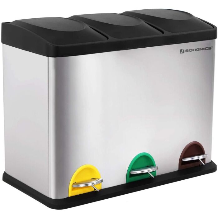 - Driedubbele afvalbak met 3 aparte pedaalbediende bakken voor eenvoudig gebruik.