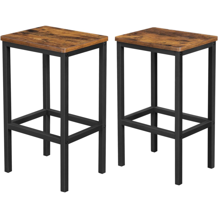Elke barkruk heeft een afmeting van 40 x 30 x 65 cm en is vervaardigd met een stevig ijzeren frame dat een mooie contrast creëert met de houten zitting. Het kwalitatief hoogwaardige materiaal garandeert duurzaamheid en lang gebruik.