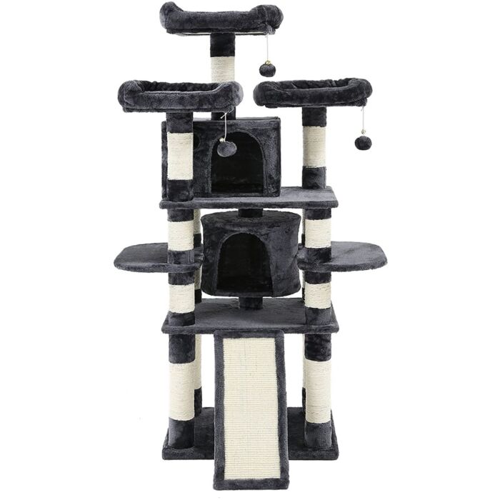 Hoppa! | Kattenboom – krabpaal – rookgrijs – spaanplaat/pluche/sisal – 50 x 62 x 171 cm (b x l x h)