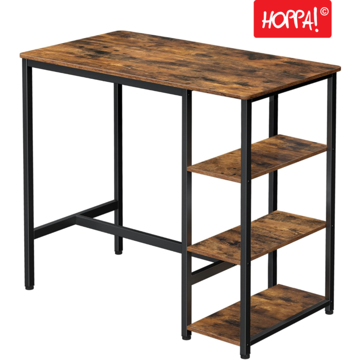 De Hoppa! Metalen bartafel in de kleur bruin is een stijlvolle en functionele toevoeging aan je eetruimte. Met een tafelblad van 110 x 61 cm biedt deze bartafel voldoende ruimte om salades, pasta en andere gerechten te serveren. Het opwindende industriële design met 3 houtvezelplaten geeft je eetruimte een moderne uitstraling.