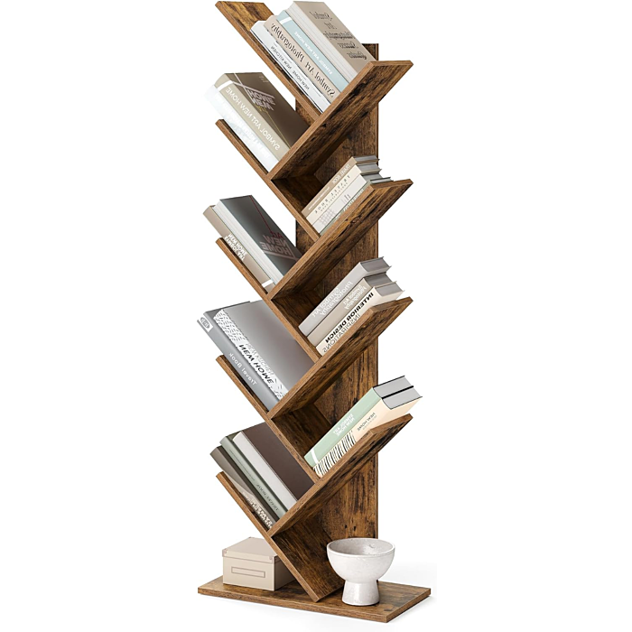 - Voor stijlvolle lezers: Unieke boomvormige boekenplank met geometrisch silhouet